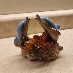 Beautifully crafted dolphin figurine featuring vibrant blue and brown colors. A perfect addition to your home art collection. excellent condition