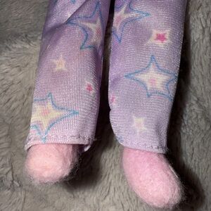 The Dream Glow Barbie 2001 Soft Body Doll is a 10-inch fashion doll with blonde straight hair, blue eyes, and a light complexion. She comes in a set that includes the doll and clothes, made from cloth and plastic materials. This Barbie doll, part of the Barbie brand, is a girl doll of Caucasian ethnicity and was manufactured in the year 2001 during the 2000-2009 time period. With a soft body design, this Barbie is perfect for collectors or children who enjoy playing with dolls.