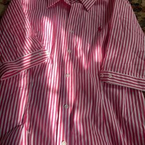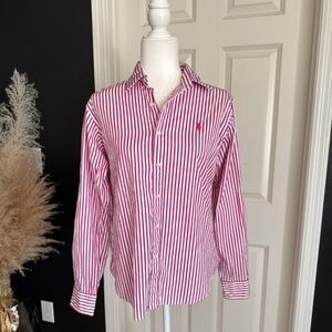 Ralph Lauren woman’s Pink and White Striped Button-Up NWOT 10 3/4 sleeves