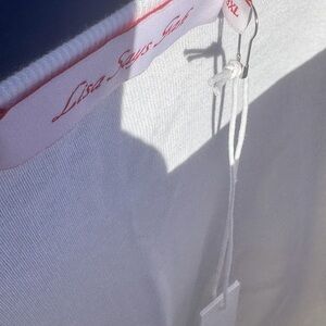 Classic white baby t-shirt by Lisa Says Gah. Minimalist and versatile. Slim fit! Shoulder 16”, chest 39.75”, waist 37.25”, length 20.25” 100% cotton.