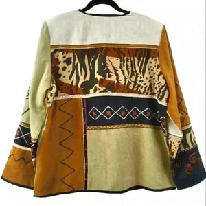 Indigo Moon Art To Wear Vtg Button Front Rayon Linen Cotton Blend Boxy Jacket.
