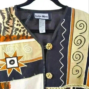 Indigo Moon Art To Wear Vintage Button Front Rayon Cotton Jacket.