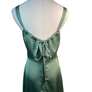 Hutch ModCloth Size 2 Tie-Back Midi Fit & Flare Green Satin Dress Lined Pockets