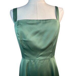 Brand New Elegant satin dress with a flattering square neckline, adjustable back tie, and a graceful midi length. Crafted for formal or semi-formal occasions. Green satin dress, women's formal dress, midi evening dress, party dress, adjustable tie dress, elegant green dress, satin fabric dress, semi-formal dress, hutch green dress, size 2 dress, elegant midi gown, cocktail dress, square neckline dress