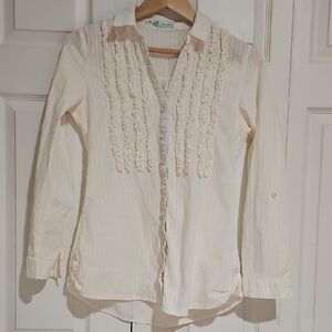 š¤ INC International Concepts Lace Trim Ruffle Button Top ā Size L