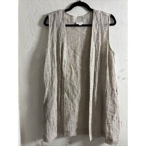 Pure Jill Linen Open Cardigan Gauze Lightweight Fabric Quiet Luxury Boho SZ MP