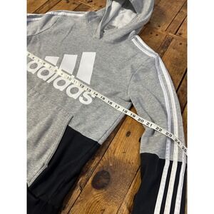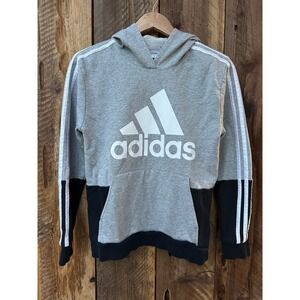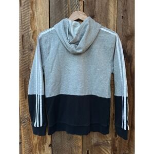 Adidas Hoodie Youth L Gray Black Colorblock Pullover Sweatshirt Logo Athleisure