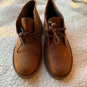 Stylish brown women's Clark bootie shoes. Comfortable and versatile.