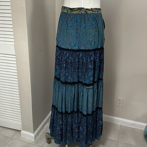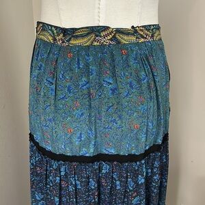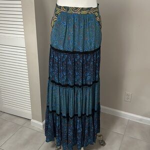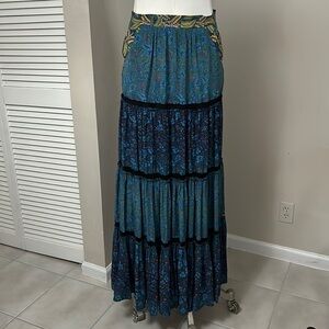 Elegant and timeless — this Marchesa Voyage 100% Silk Blue Maxi Skirt blends effortless bohemian charm with refined luxury. Seen on Vogue RTW, this flowing tiered design features a stunning mix of blue floral prints and contrasting trim for dimension and movement. Perfect for resort wear, events, or a chic everyday statement.