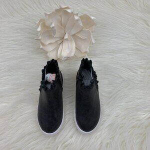 Black Sneaker Booties With Adorable Ruffle and Shimmery Elastic Detail NWT