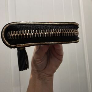 Sleek and stylish, this Dooney & Bourke wallet is crafted from glossy black patent leather. Perfect for organizing your essentials with elegance.