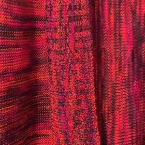 United States Sweaters 3/4 dolman sleeve variegated red and black easy sweater M. Cardigan seater with slightly rounded lapels. Medium to lightweight. Rib knit trim. About 20 inches from under one arm to the other. About 28.5 inches from shoulder seam to hem. Great used condition. Bundle with more items from my closet to save.
