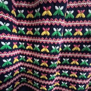 A standout kaftan dress with a boxy fit and striking multicolor butterfly embroidery.