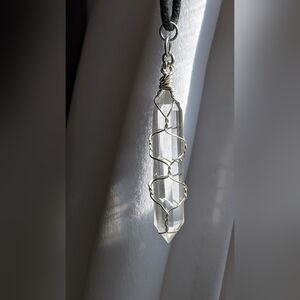 Healing Vogel Quartz Point Amulet Handmade Sterling Silver Basket Weave