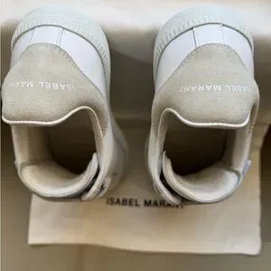 Like new. Stylish Isabel Marant athletic shoes. Features white and cream tones. Velcro straps for easy wear. Only worn twice.