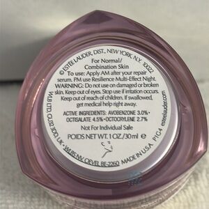 Discover the elegance of Estee Lauder with this lipstick and skincare set. This bundle includes 1oz moisturizer Resilience, multi effect with SPF 15, pink lipstick , Soft Clean infusion 1oz, advanced night repair creme .17oz, and Advanced night Repair .23 Fl. Oz