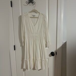 Stylish tan puffer jacket. Features full zip closure. Elastic cuffs for snug fit. Ideal for cold weather. Size small.