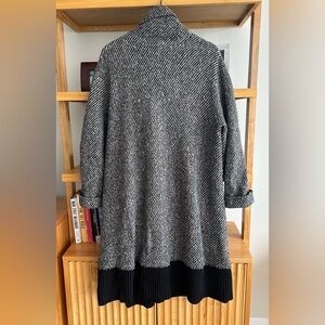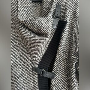 OSKA Black & White High Collar Knee Length Coat - Relaxed Fit - 100% Virgin Wool