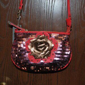 Such a pretty floral pattern on this passport holder. Features two-position snap closure tab. Interior has a pocket for your passport, a larger pocket for your airline ticket and several card holder pockets. Perfect accessory for travel. This holder has been used several times and the inside of the tab has some dark spots (see last picture). Also note the leather on the back is not smooth and this is normal. By Patricia Nash, GUC.