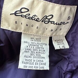 Eddie Bauer down gore-Tex hooded coat. Size large petite. EUC. Removable hood