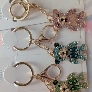 Colorful bling bear keychains with rhinestone details. Perfect for adding a pop of color charm to your keys or bag or backpack 🎒