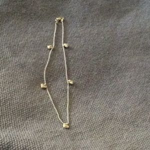 14kt white gold ankle chain.5 tiny hearts with diamond.beaded chain