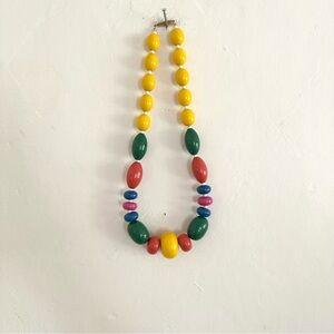 Vintage Necklace Colorful Rainbow Wood Bead Chunky Bright Funky