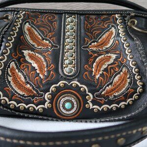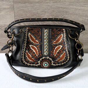 Montana West R Heavy Duty Hand Shoulder Bag Purse Bird Feather Detail 8 Pockets