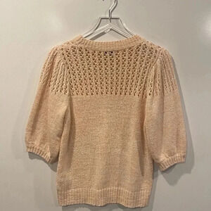Joie Open Knit Puff Sleeve Una Crewneck Sweater Melon Womens Size Large