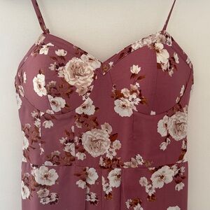 Floral Print Sleeveless Sweetheart Neck Bra Cup Jumpsuit