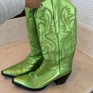 Elevate your look with Gucci sneakers. Green and cream with crystal accents. Perfect blend of luxury and style.