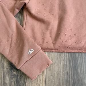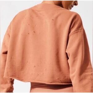 ALO Yoga Fierce Distressed Crewneck Cropped Pullover Sweatshirt Size XS Small *