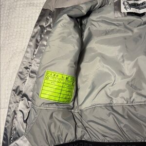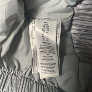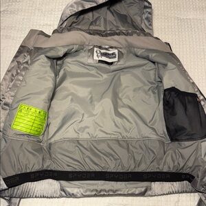 Pre-owned kids Spyder Girls Lola Insulated ski jacket. Jacket has detachable hood and a beautiful silver color. Warm jacket for ski resorts and winter casual wear.