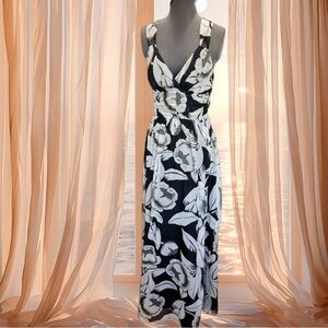 White House Black Market Silk Floral Black and White Maxi Dress Sz 2