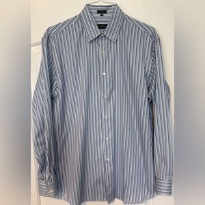 Super lightweight + warm 90% down fill with a sleek dark gray pinstripe finish. Full zip front, secure zip hand pockets, cozy stand collar for added warmth. Clean and in excellent condition with no rips, stains, or odors.
