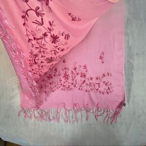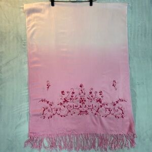 Embroidered Shawl Wool / Viscose Scarf with Fringe Pink and Red 70 inches long