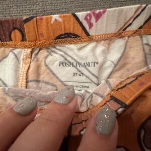 Posh peanut coffee and donuts cha cha ruffle leggings. Size 3-4t. Slightly faded from washing. Good condition. (Matching sweatshirt listed if would like to bundle)