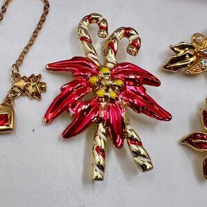 Two Holiday Pins - One Bell, One Candy Canes & Pointsettia
