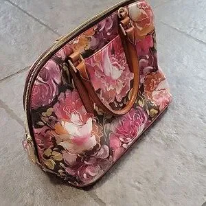 Brahmin Hemingway Pink Floral Dome Satchel Bag Purse