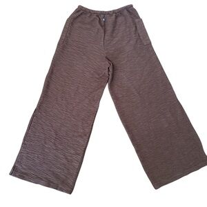 Stylish brown pants with a textured finish. Features a white drawstring for a relaxed fit.