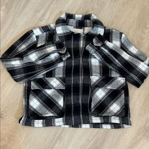 So cute and perfectly cropped hitting at the waist, this plaid jacket is the perfect layering piece for complementing all of your cool-weather outfits. This Lucky Brand women’s jacket is a size large and new with tags. It has a snap button closure, button cuffs, and flap front pockets.