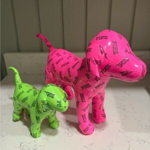 Victoria's Secret PINK Logo Dog Figurines. Bright pink and green colors. Green dog has some spots on it and they are pictured. Overall these are in great shape. Vintage items no longer available. Valued at over $40 brand new at the time of purchase. From clean non-smoking home. Comment with any questions! Always open to offers!