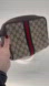 Stylish Gucci unisex pouch with iconic monogram pattern and Sherry Line. Features bold red and green stripe. Ideal for travel.