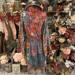 NATURAL LIFE PATCHWORK LOVE BLANKET ROBE | BOHEMIAN GYPSY | SCALLOPED EDGES | 2 POCKETS IN FRONT | TIE AT WAIST | CONDITION: GREAT PRE LOVED CONDITION - LIKE NEW | SIZE LARGE