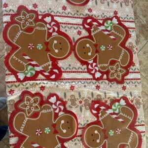 Preowned Gingerbread Vinyl Placemats Set of 6 + Fabric Oval Tablecloth 82” x 60”