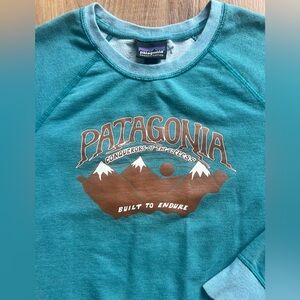 Patagonia sweatshirt · Organic cotton blend · Mountain graphic · Outdoor hiking layer · Cozy crewneck · Built to Endure