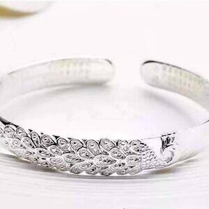Sterling Silver Peacock Adjustable Cuff Bracelet .925