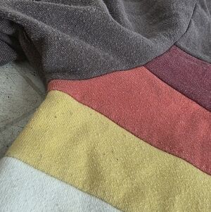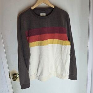 This Marine layer corbet sunset striped jordan crew Neck Sweatahirt size Large used With signs of fuzz under the arms and a small, barely noticeable stain on the front, otherwise in good condition