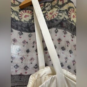 straps can be sewn to bust for extra support. you can see from the pics that my seamstress and i decided to try it so there are small needle pokes on the inside of the straps. above that there are some slightly darker marks from the dry cleaners hanger. I haven’t attempted removing.