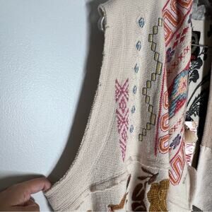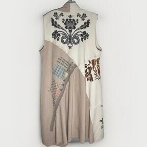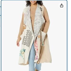 NEW Johnny Was BIYA Embroidered Longline Knit Vest XL Draped Boho Patch Pockets